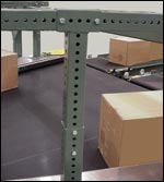 The plow structure is floor supported and spans the conveyor
